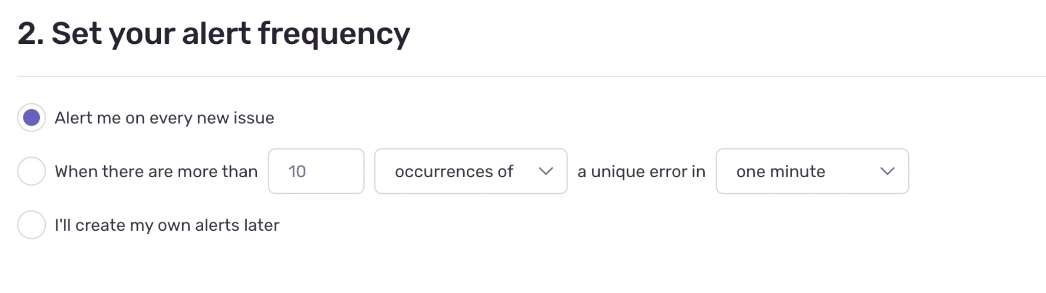 - 에러 수 제한 : 무료 버전은 월간 에러 카운트가 5,000개로 제한 됩니다. (유료 버전은 50,000개 이상)