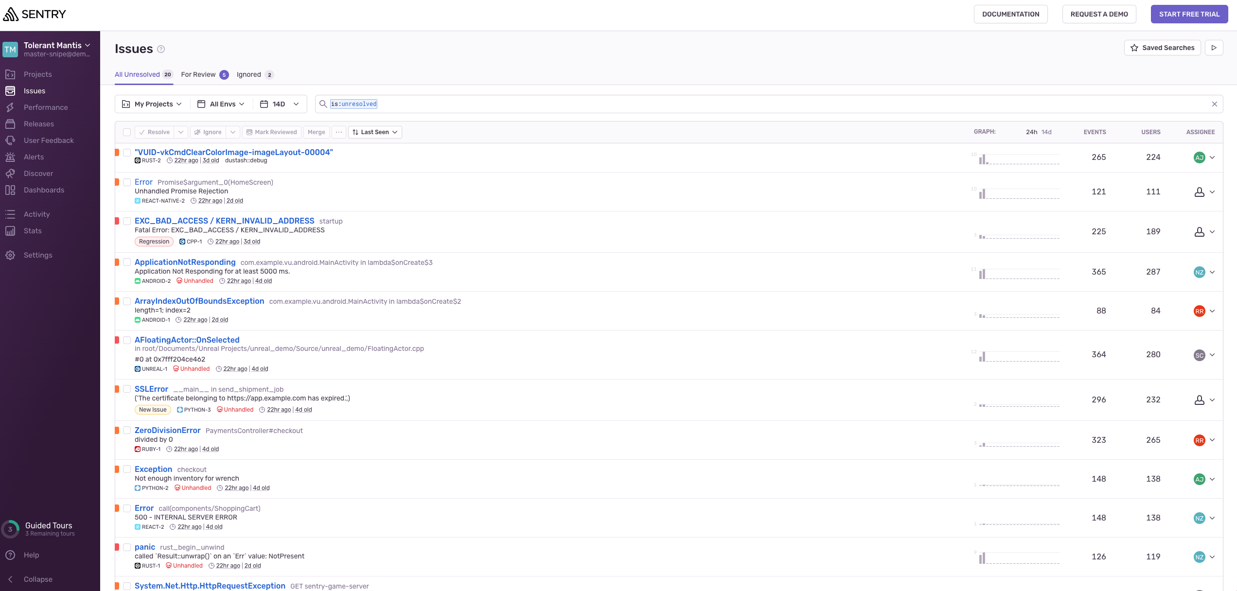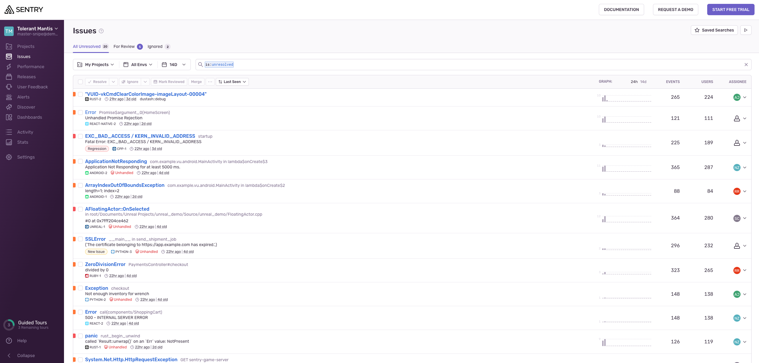 - 여러 프로젝트의 이슈를 한 곳에서 관리함으로써 에러 모니터링을 일원화 할 수 있습니다.