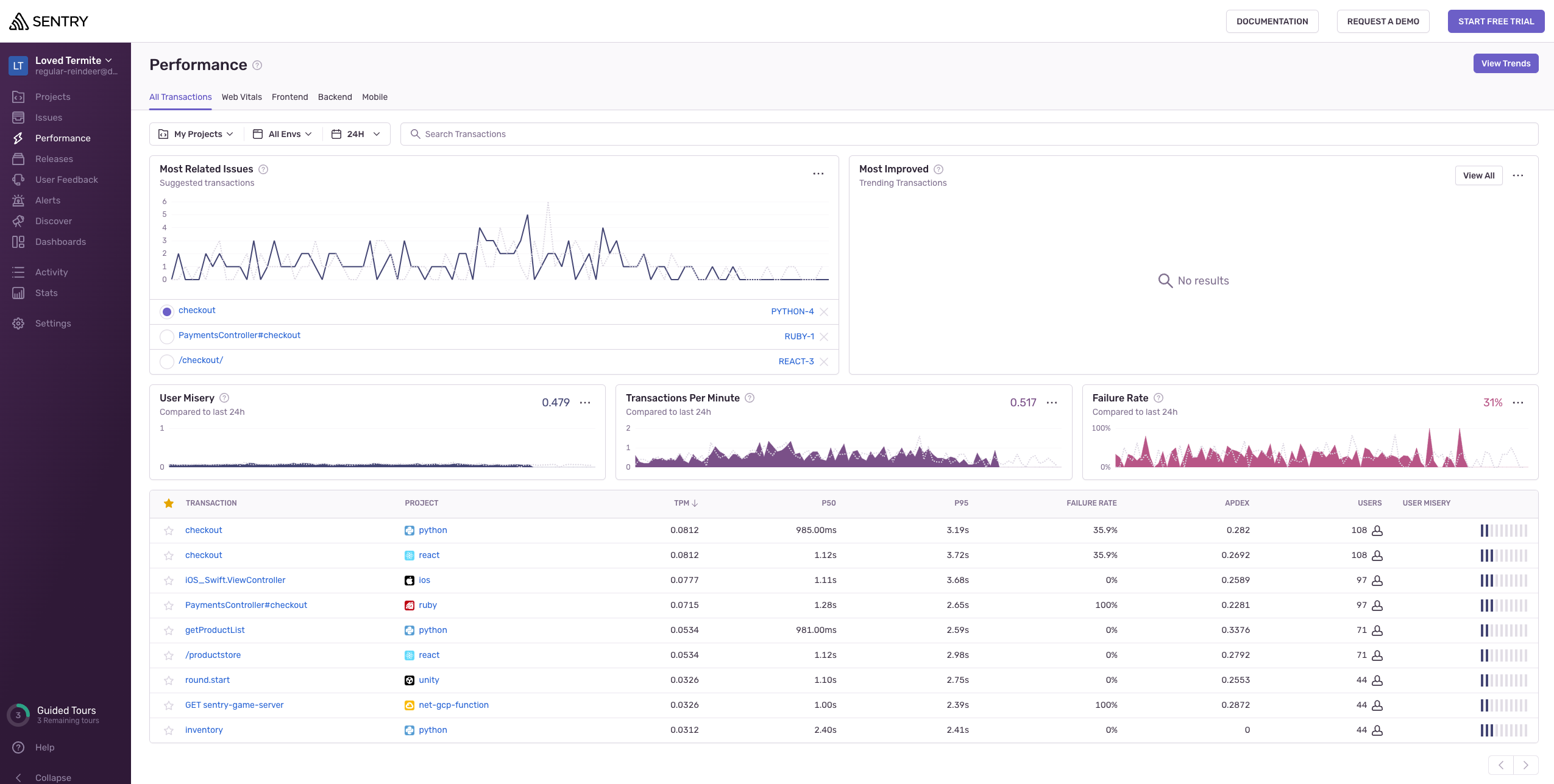 - 페이지를 느리게 로드되도록 만드는 API 호출이나 프로젝트 전반적으로 영향을 주는 이슈를 추적합니다.