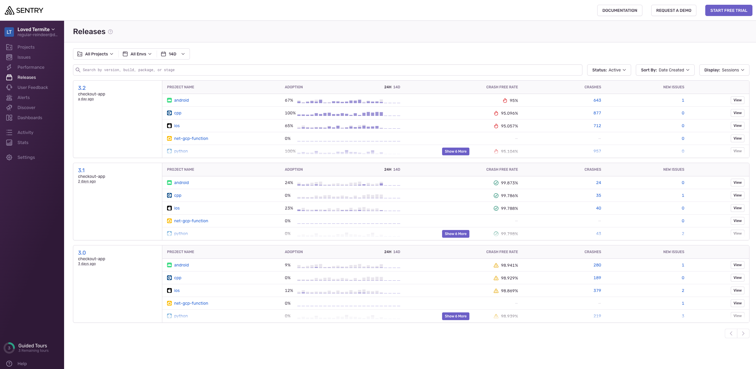 - 하나의 프로젝트에서의 특정 Release 에서 새로 발생한 이슈만 따로 보거나, 이전 Release 들과 비교 할 수 있습니다.