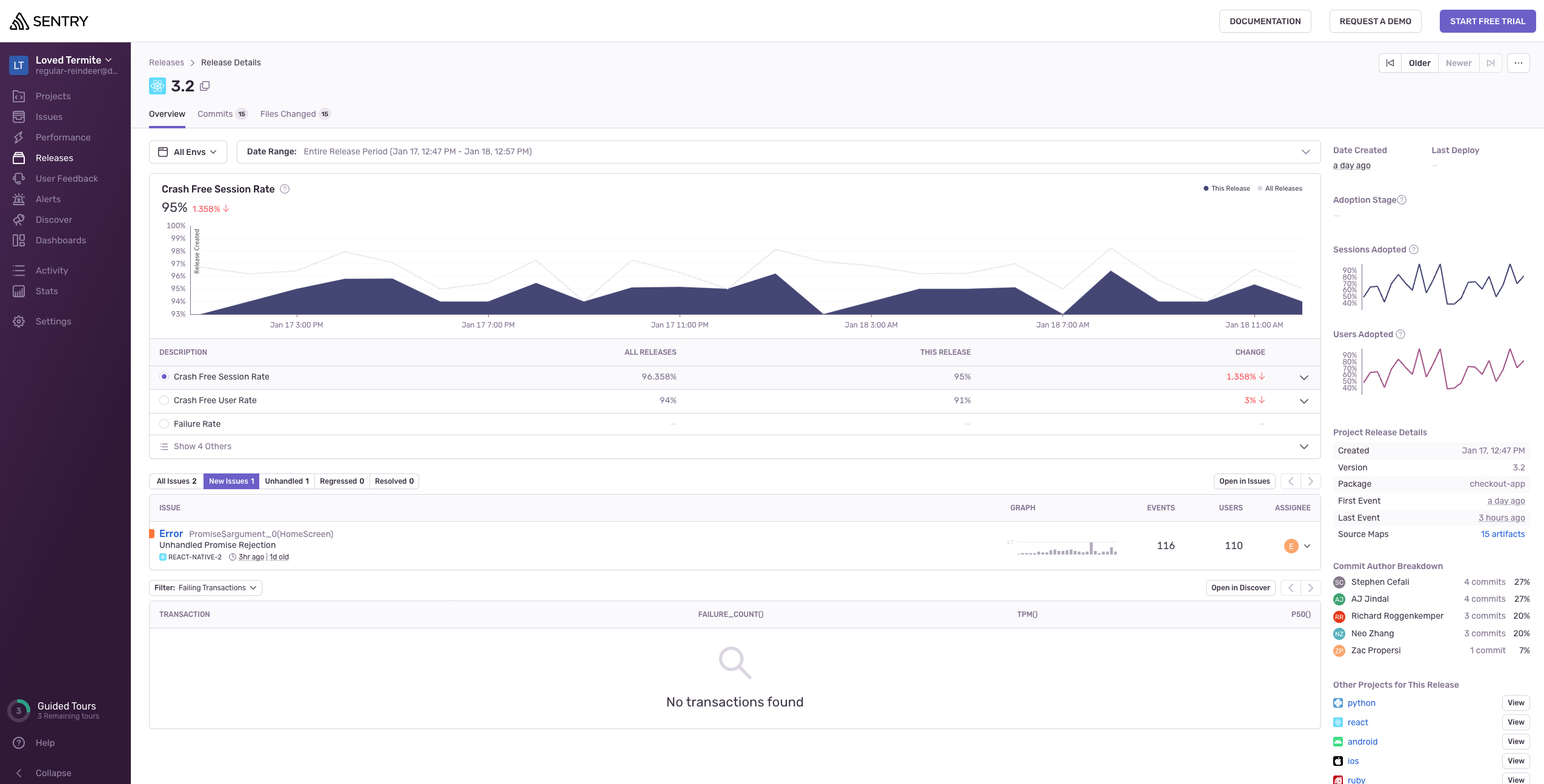 - release: 애플리케이션 버전 (보통 package.json에 명시한 버전을 사용합니다. 이는 버전별 오류 추적을 용이하게 합니다.)