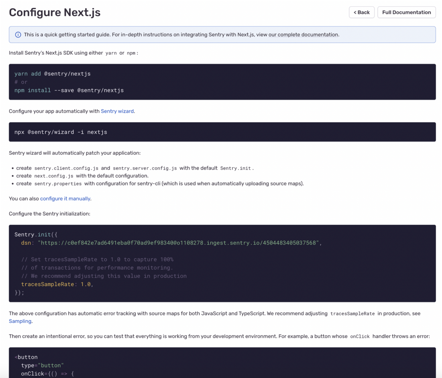 - sentry.client.config.js 와 sentry.server.config.js 파일을 생성후 Sentry 초기화(sentry.init)